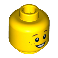 3626cpr0677 Minifig Head Lil' Nelson / Boy / Girl / Elf, Brown Eyebrows and Freckles, Open Smile Print Yellow 1