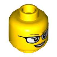 3626cpr1965 Minifig Head, Eyebrows, Glasses with Thick Edge, Peach Lips Print Yellow 1