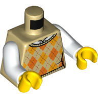 973c27h01pr6177 Torso Sweater, Argyle, Orange and Bright Light Orange Diamonds Print, White Arms, Yellow Hands Tan 1