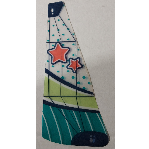 Sail, Triangular, Small, 2 Corner Holes, Dark Turquoise and Yellowish-Green Panels, Coral Stars Print